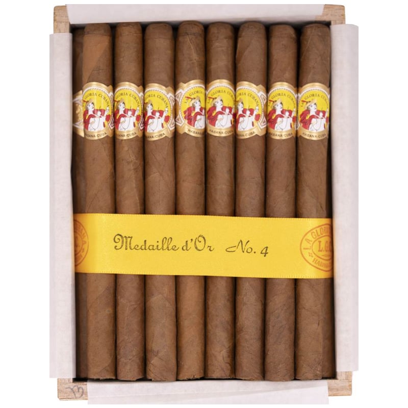 The La Gloria Cubana Médaille d’Or No. 4 is an elegant panatella measuring 152 mm by a 32 ring gauge, offering a visually appealing profile. It opens with woody and spicy aromas, enhanced by an excellent draw—an essential feature for this slender size. The voluptuous smoke enriches the overall experience.