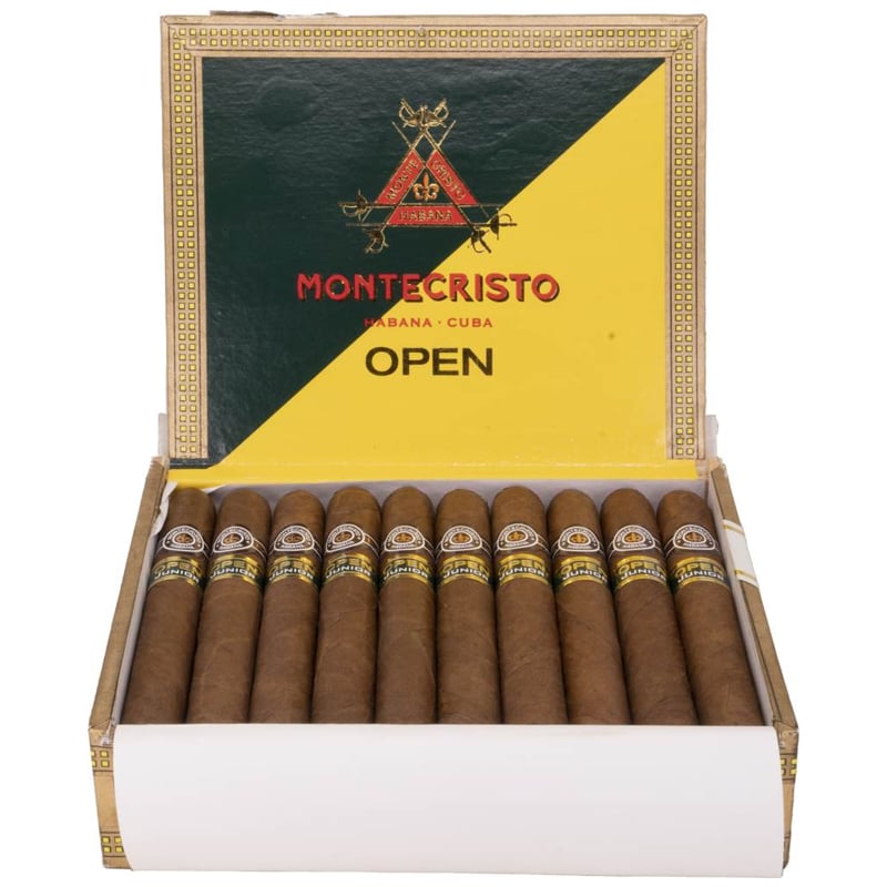 The Montecristo Junior is a petit panatella measuring 110 mm by a 38 ring gauge, wrapped in a slightly spotted Colorado wrapper. The cold draw reveals animal notes with a notably tight draw.