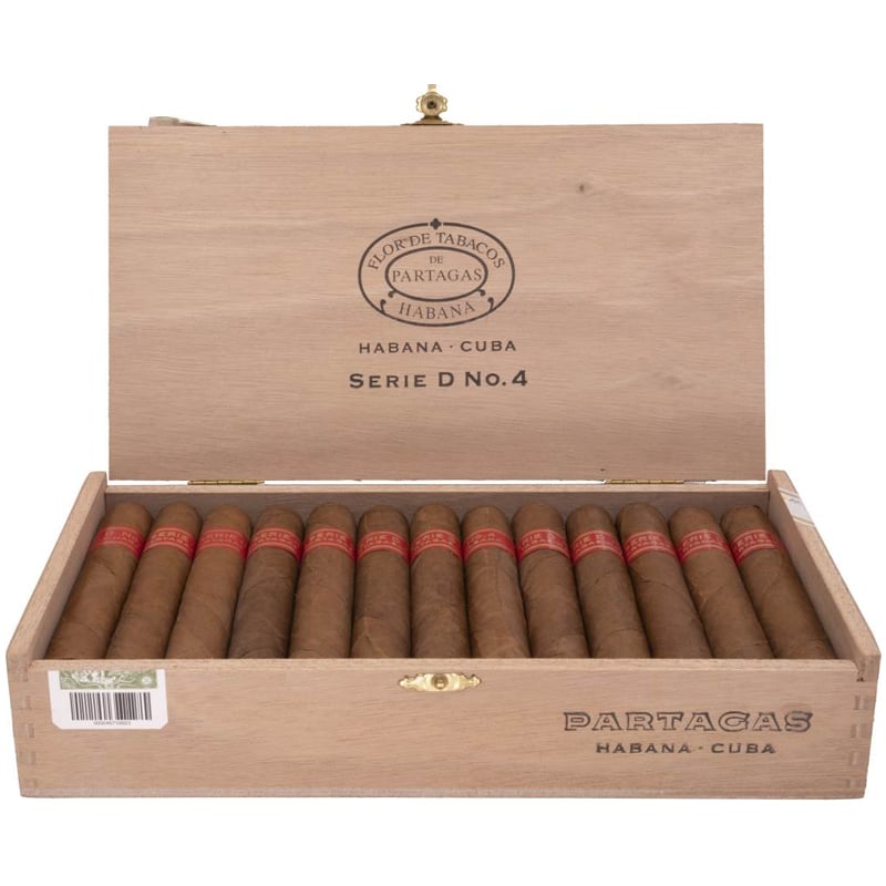 The Partagás Serie D No. 4 is a robusto measuring 124 mm by 50 ring gauge, wrapped in a slightly dry colorado leaf.