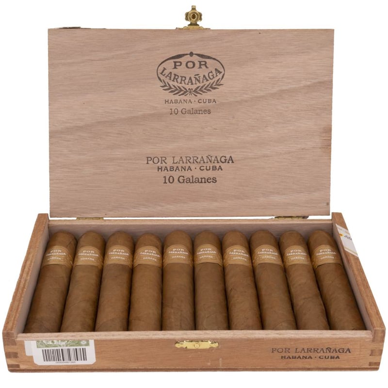 The Por Larrañaga Galanes presents itself in a robusto format of 120 mm by 52 ring gauge, wrapped in a rustic yet oily colorado maduro leaf. The construction is solid, promising a refined experience.
